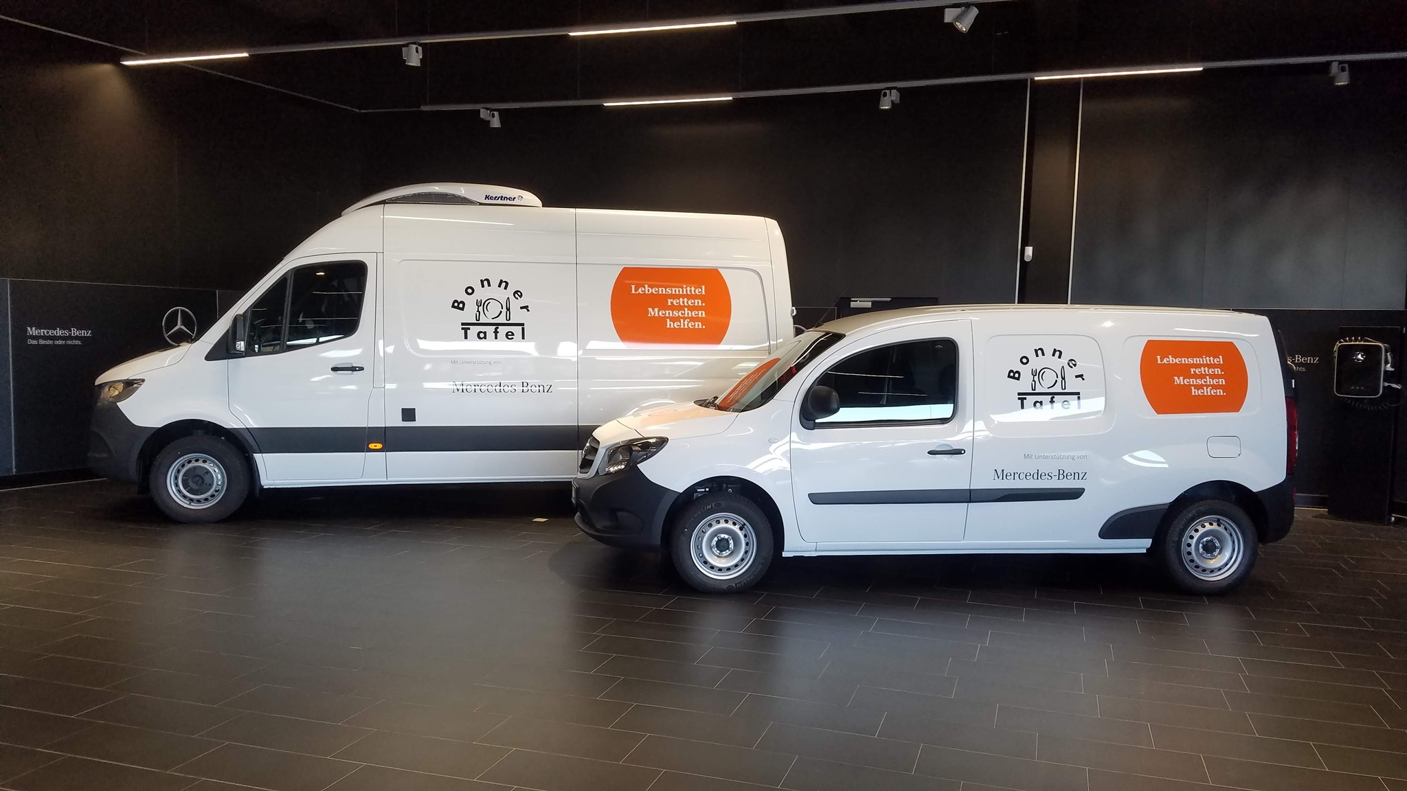 Am 06. Februar übernahm der Vorstand der Bonner Tafel zwei neue Fahrzeuge, einen weiteren Sprinter und erstmals einen PKW- Kastenwagen. Damit sind es wieder fünf Sprinter, die zusammen mit unserem LKW täglich Lebensmittel zur Geschäftsstelle liefern. Mit dem PKW können wir einen neuen Service anbieten. Wir beliefern nun auch Kunden zu Hause, die nicht mehr in der Lage sind, zur Geschäftsstelle zu kommen.