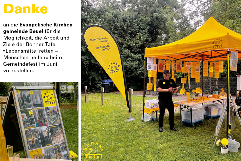Herzlichen Dank an die Besucher:innen für den interessanten Austausch, die gute Organisation des Festes und die Spende, die die Arbeit im Sinn der Ziele der Bonner Tafel „Lebensmittel retten - Menschen helfen“ unterstützt.